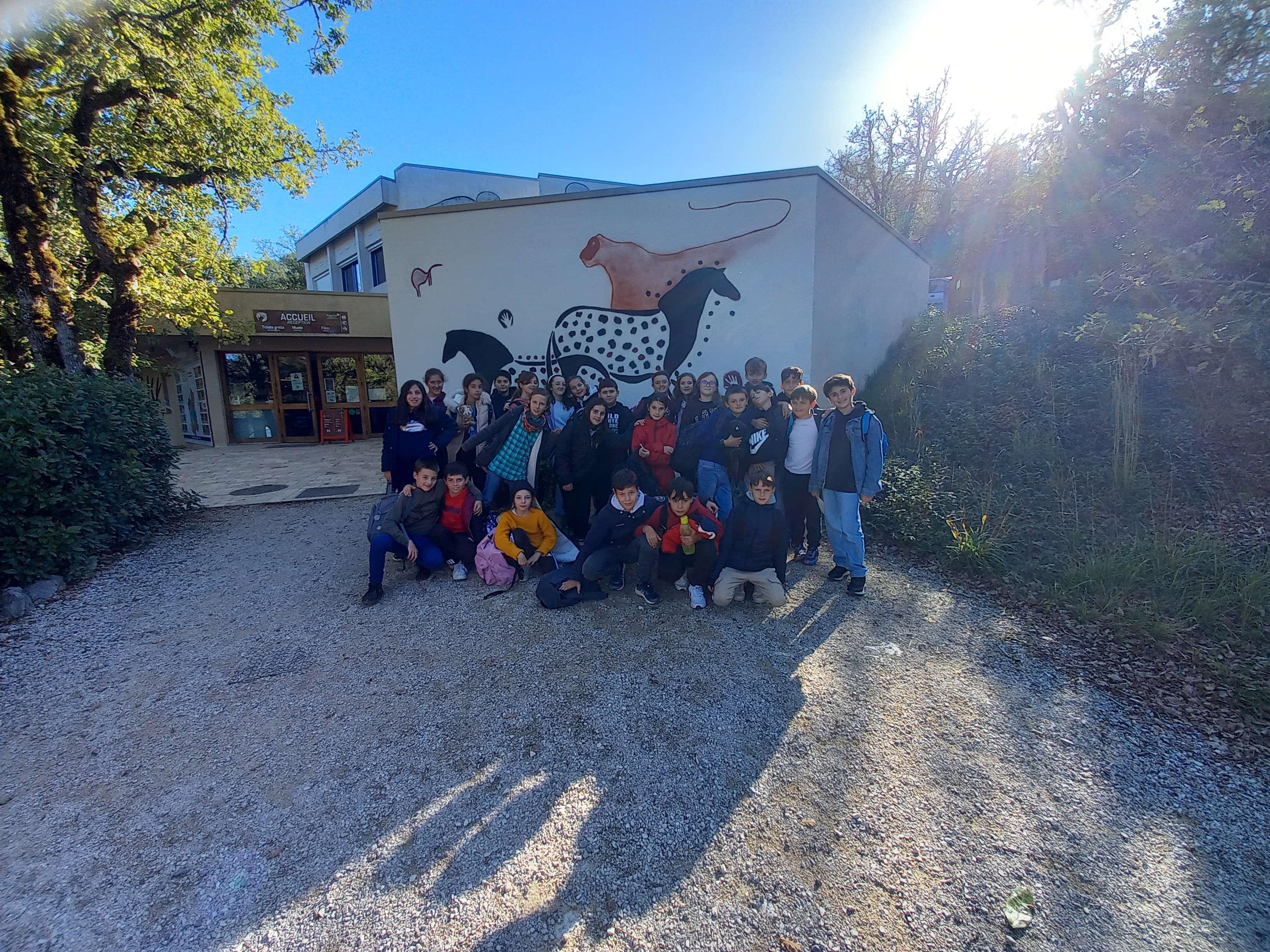 L’après-midi a été consacré à la visite de la grotte du Pech Merle (Cabrerets). Nos ancêtres ont dessiné ou gravé sur les parois de nombreux animaux mais aussi des êtres humains et d’autres signes. Les élèves ont pu admirer la splendide fresque des chevaux ponctués. Récompensés par leur attitude calme, ils ont pu bénéficier de quelques bonus : voir des griffades d’ours, des fossiles….